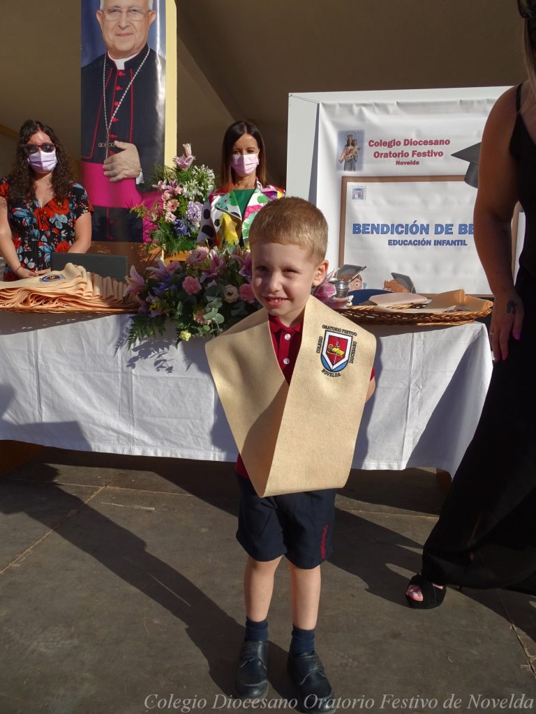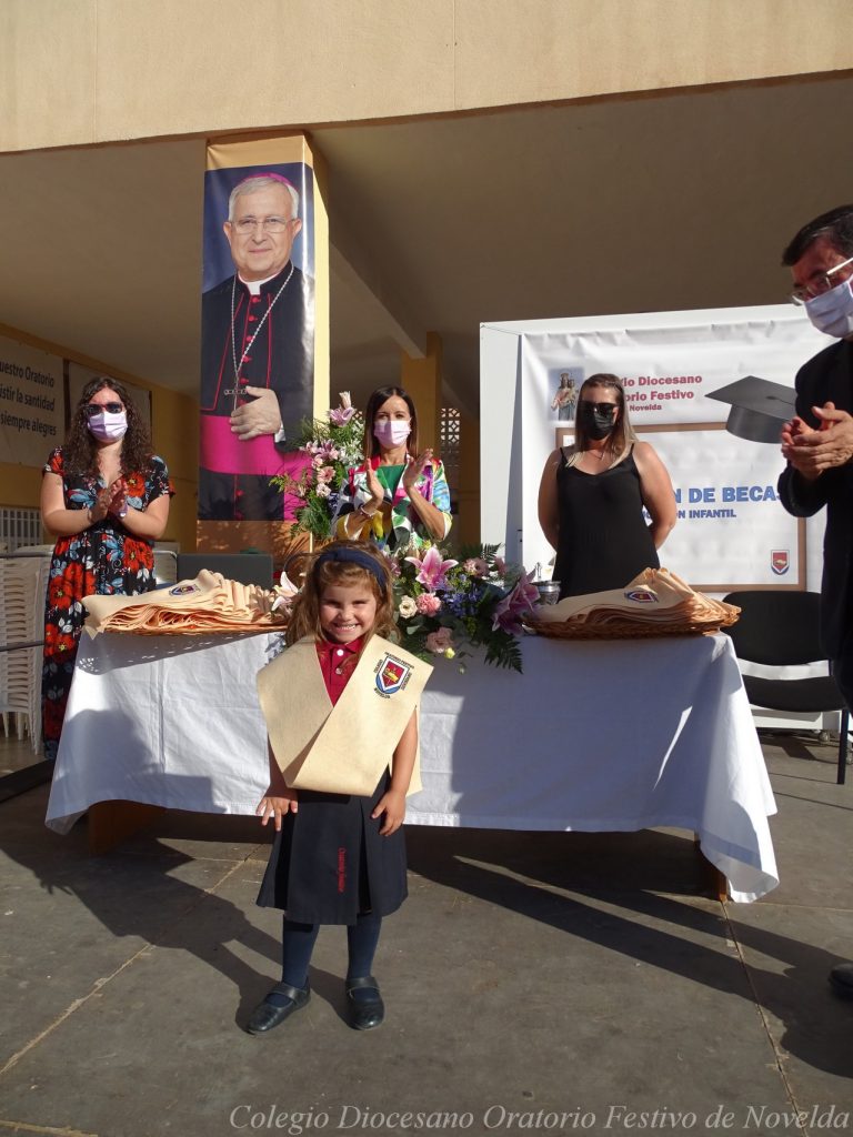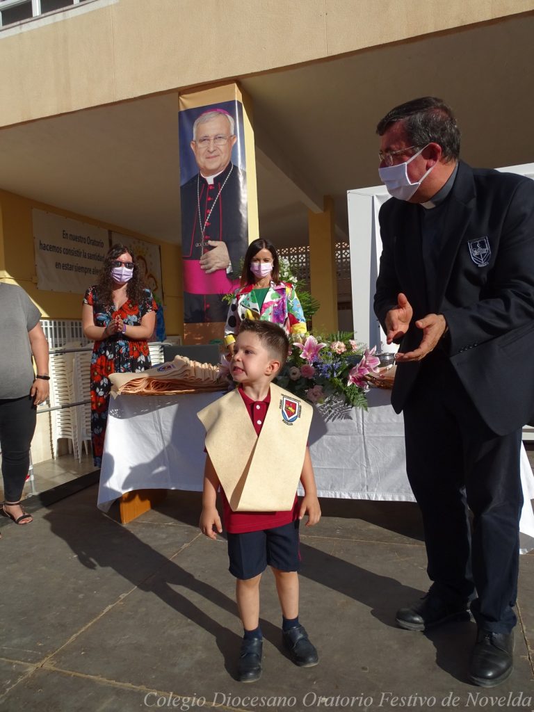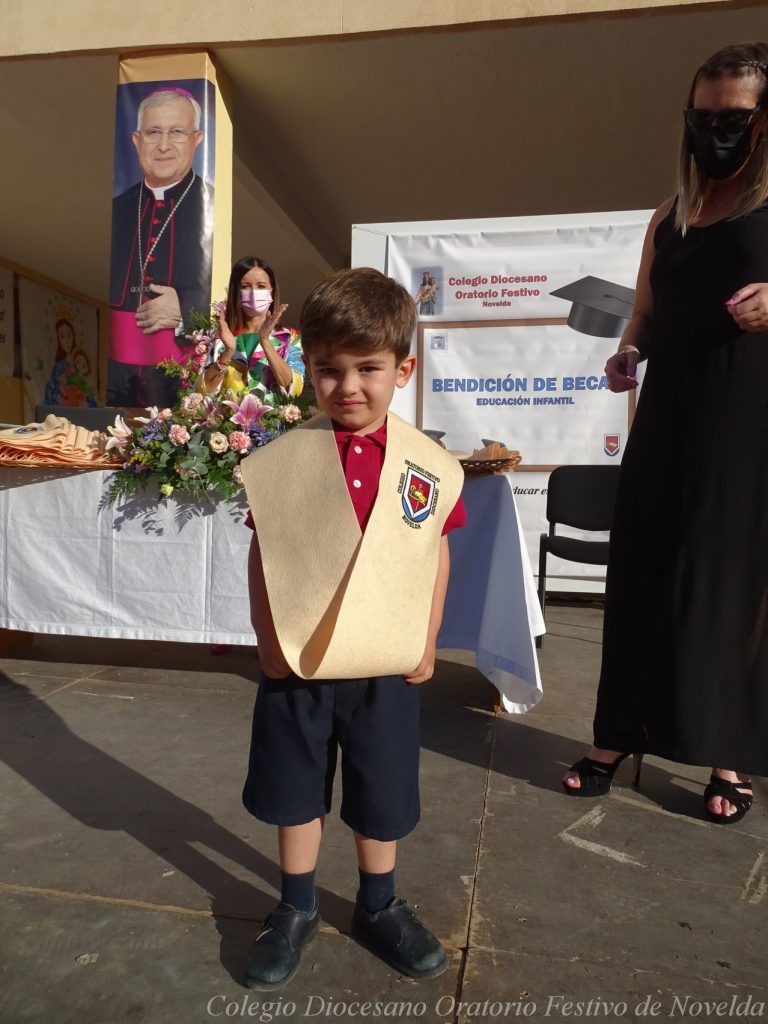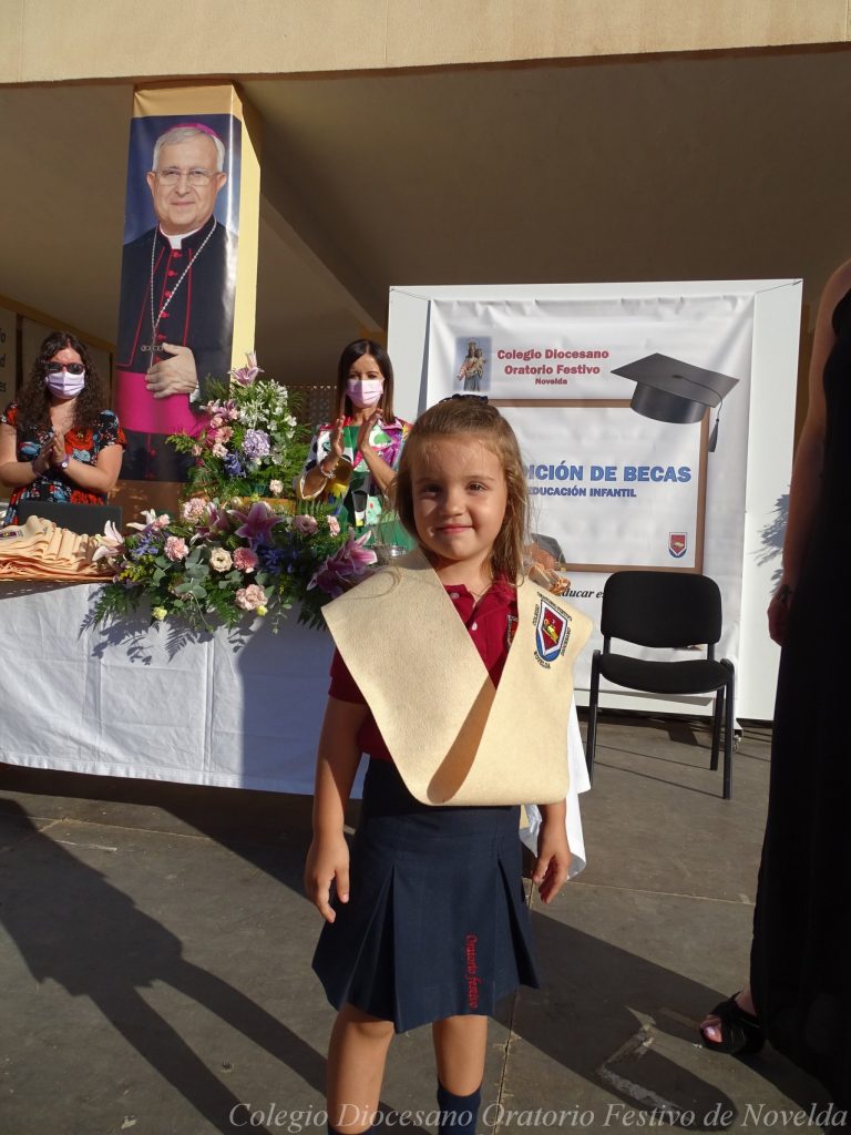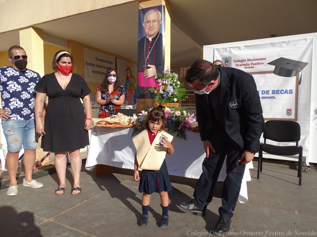 El lunes 21 de junio tuvo lugar la bendición e imposición de las becas de los niños y niñas de 3 años. Este acto se solía hacer al inicio del curso como símbolo de bienvenida al centro. Por la situación y condiciones Covid se ha tenido que aplazar a final de curso. Por suerte se pudo celebrar en el patio del colegio, acompañados por las familias, representantes del Equipo Directivo y AMPA y profesorado. Las tutoras Susi Botella y Paula Navarro cierran con este acto un curso atípico y difícil para todos. El alumnado ha demostrado una gran capacidad de adaptación a su corta edad. Dando lugar a un curso excepcional de esfuerzo y trabajo, con unos resultados excelentes. Los alumnos y alumnas recibieron su beca escolar que les acompañará toda su escolaridad en el colegio. La beca fue bendecida por el director titular Don Francisco Rayos.