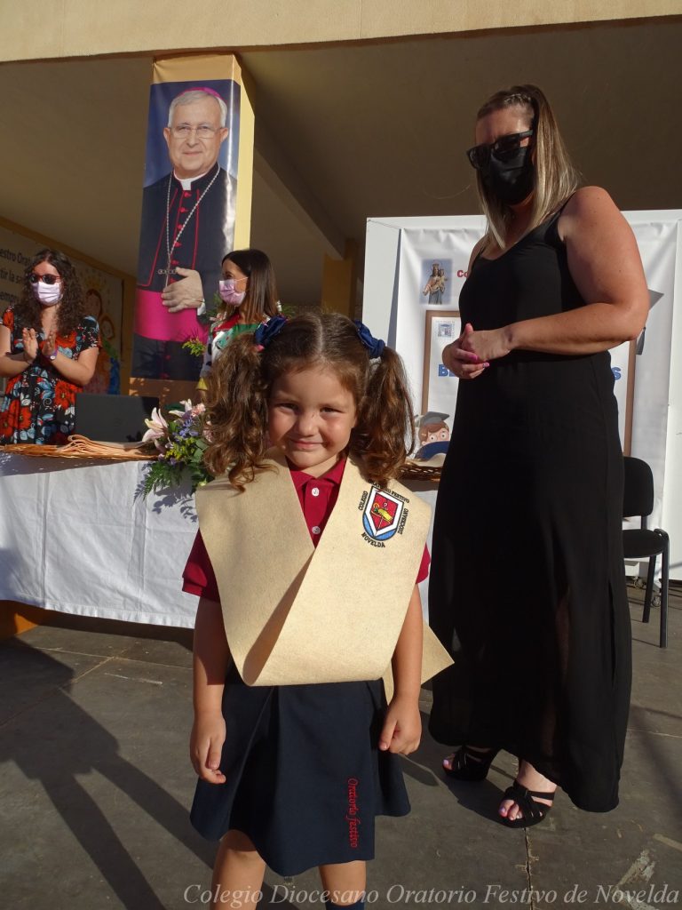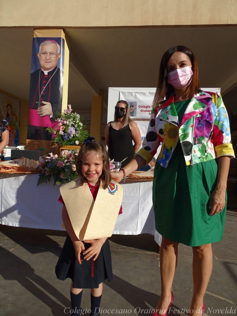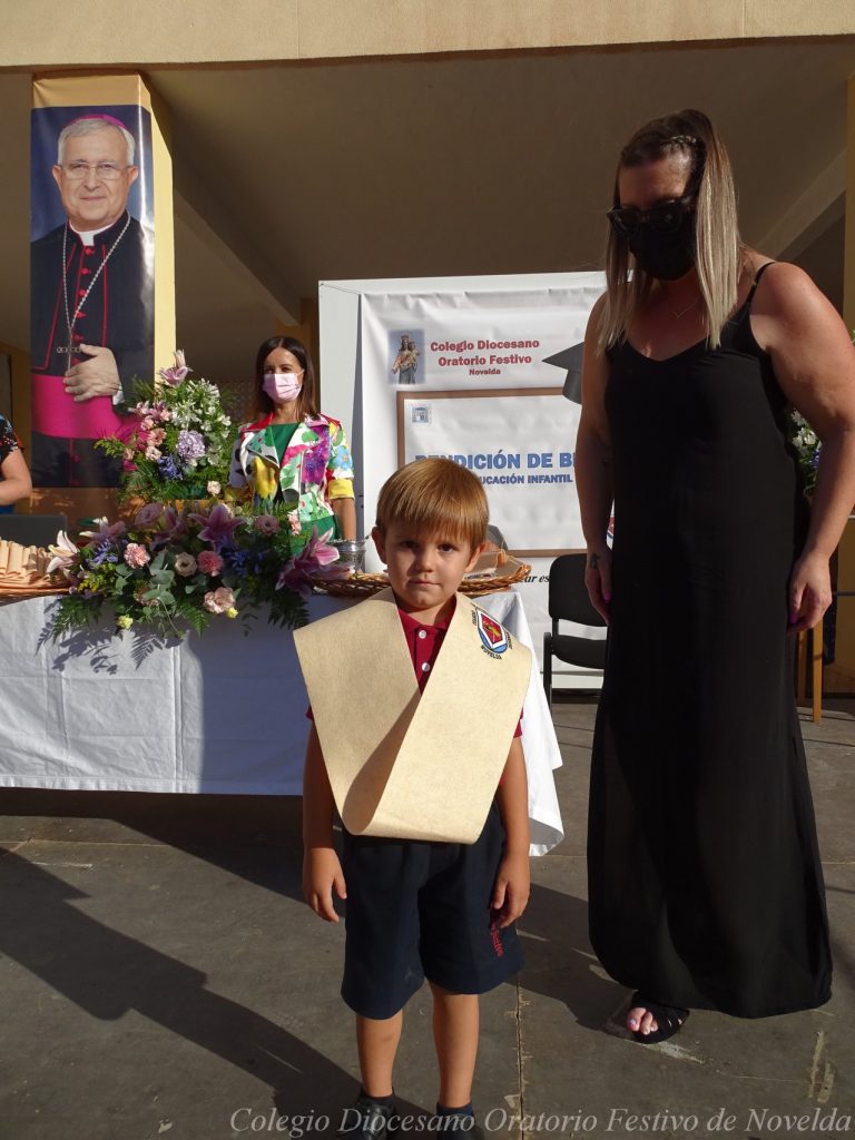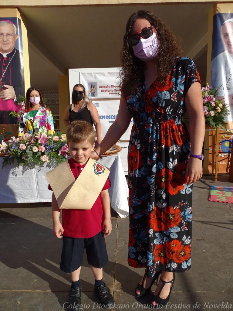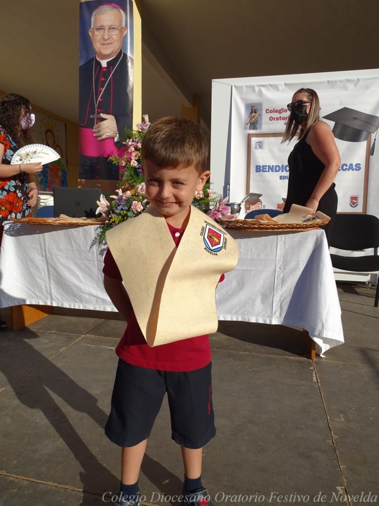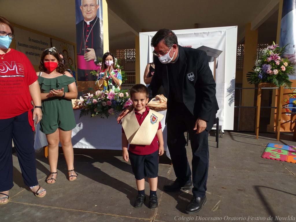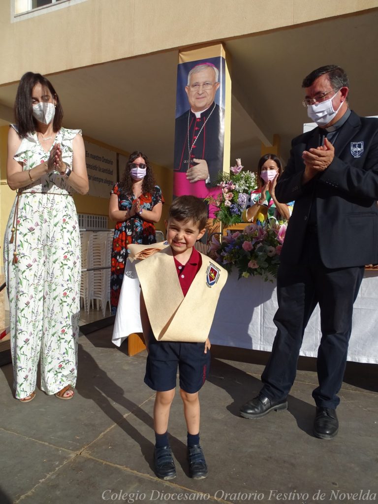 El lunes 21 de junio tuvo lugar la bendición e imposición de las becas de los niños y niñas de 3 años. Este acto se solía hacer al inicio del curso como símbolo de bienvenida al centro. Por la situación y condiciones Covid se ha tenido que aplazar a final de curso. Por suerte se pudo celebrar en el patio del colegio, acompañados por las familias, representantes del Equipo Directivo y AMPA y profesorado. Las tutoras Susi Botella y Paula Navarro cierran con este acto un curso atípico y difícil para todos. El alumnado ha demostrado una gran capacidad de adaptación a su corta edad. Dando lugar a un curso excepcional de esfuerzo y trabajo, con unos resultados excelentes. Los alumnos y alumnas recibieron su beca escolar que les acompañará toda su escolaridad en el colegio. La beca fue bendecida por el director titular Don Francisco Rayos.