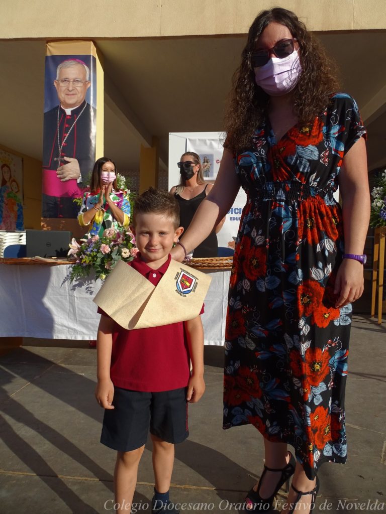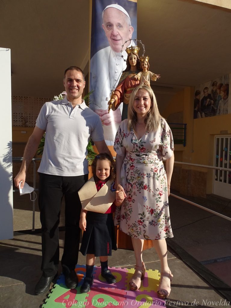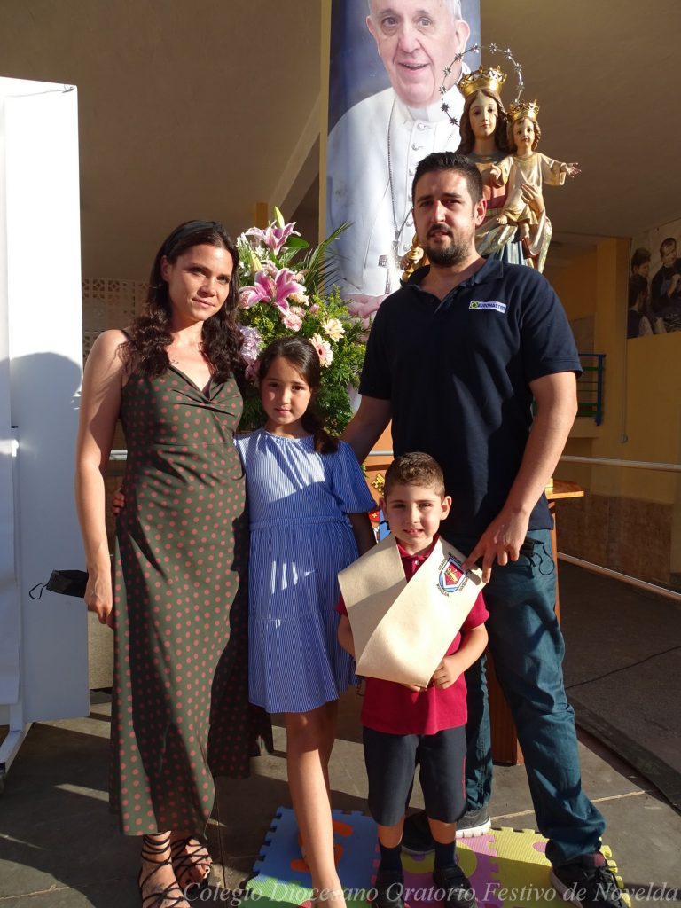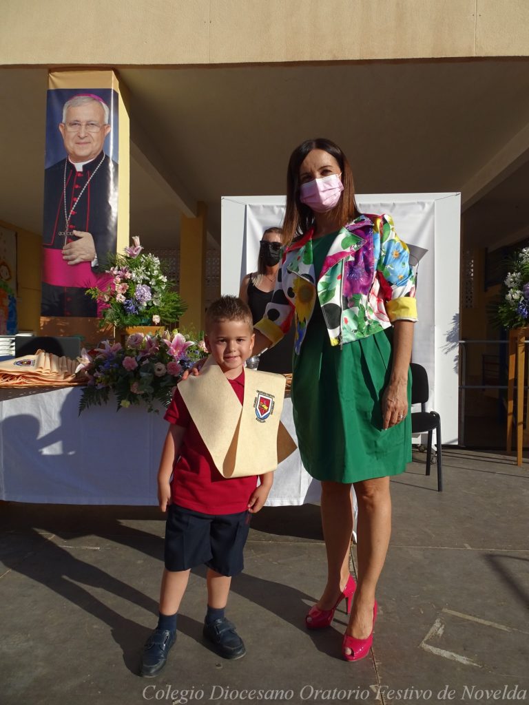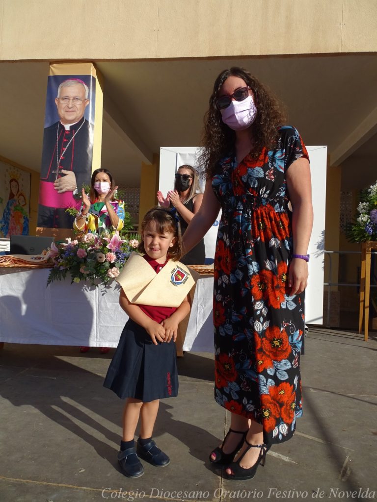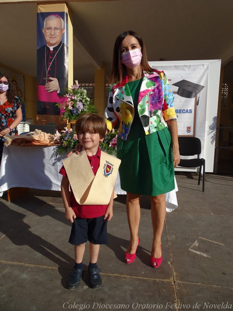 El lunes 21 de junio tuvo lugar la bendición e imposición de las becas de los niños y niñas de 3 años. Este acto se solía hacer al inicio del curso como símbolo de bienvenida al centro. Por la situación y condiciones Covid se ha tenido que aplazar a final de curso. Por suerte se pudo celebrar en el patio del colegio, acompañados por las familias, representantes del Equipo Directivo y AMPA y profesorado. Las tutoras Susi Botella y Paula Navarro cierran con este acto un curso atípico y difícil para todos. El alumnado ha demostrado una gran capacidad de adaptación a su corta edad. Dando lugar a un curso excepcional de esfuerzo y trabajo, con unos resultados excelentes. Los alumnos y alumnas recibieron su beca escolar que les acompañará toda su escolaridad en el colegio. La beca fue bendecida por el director titular Don Francisco Rayos.