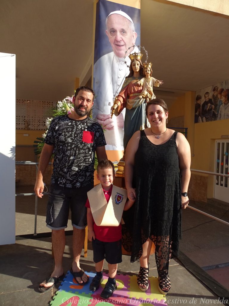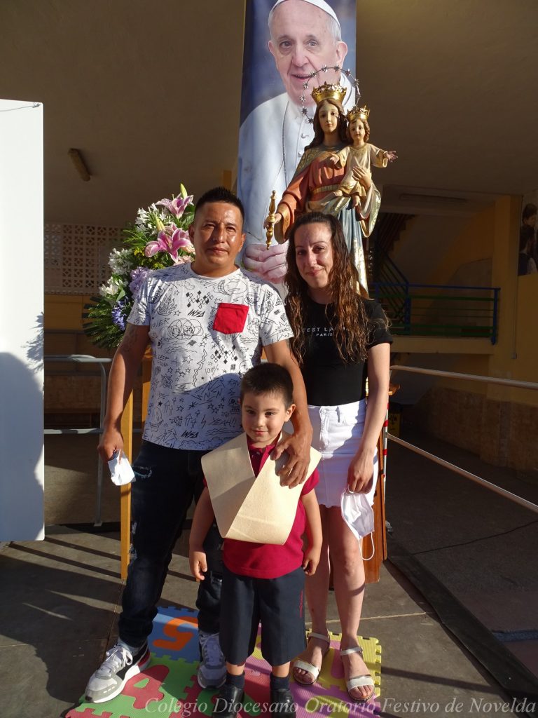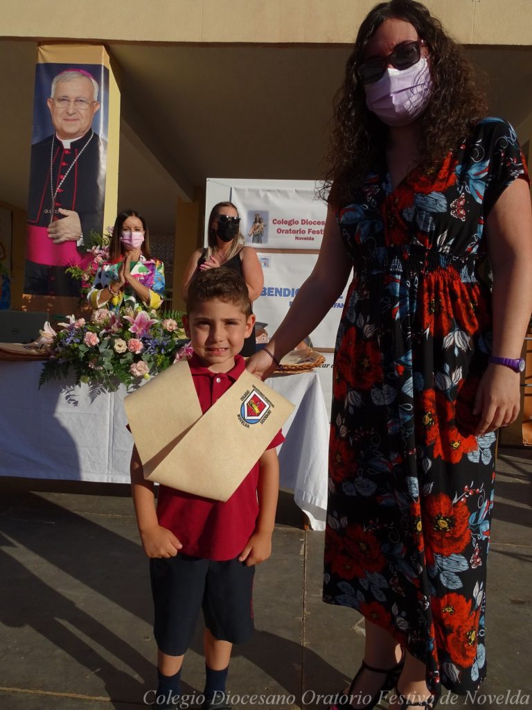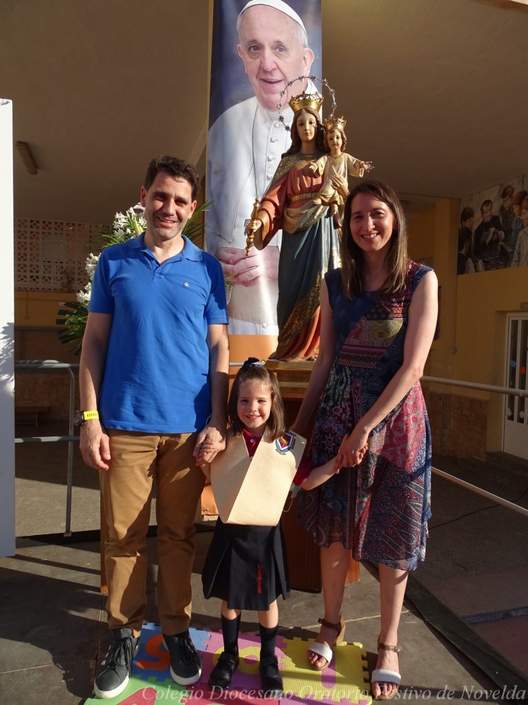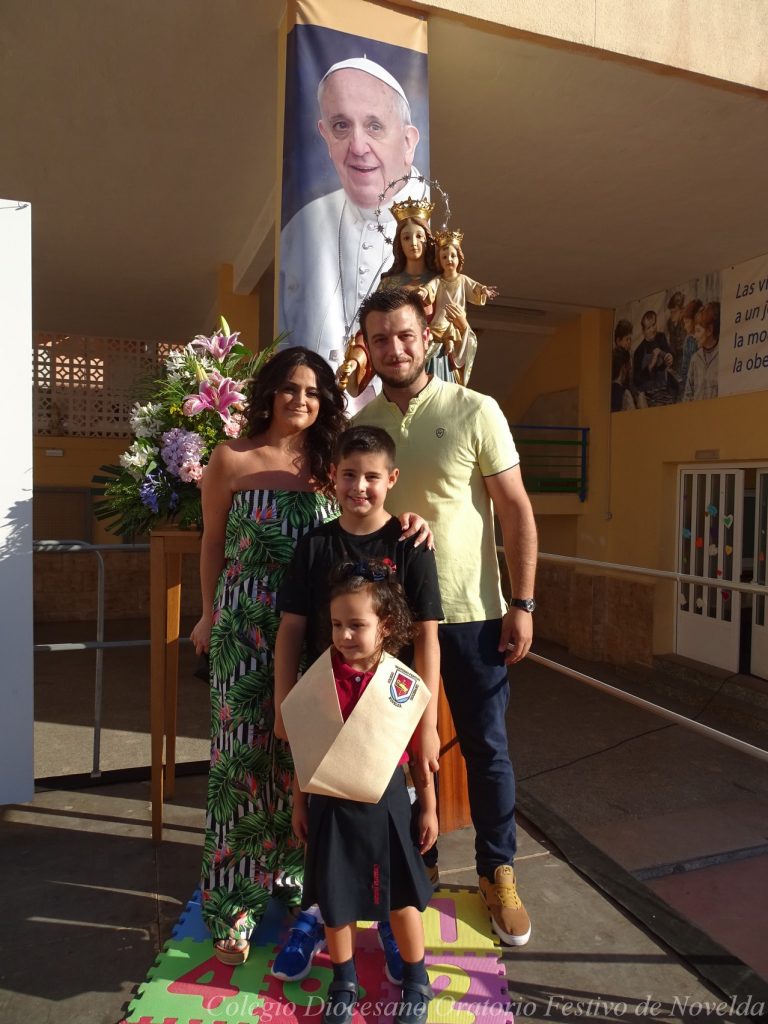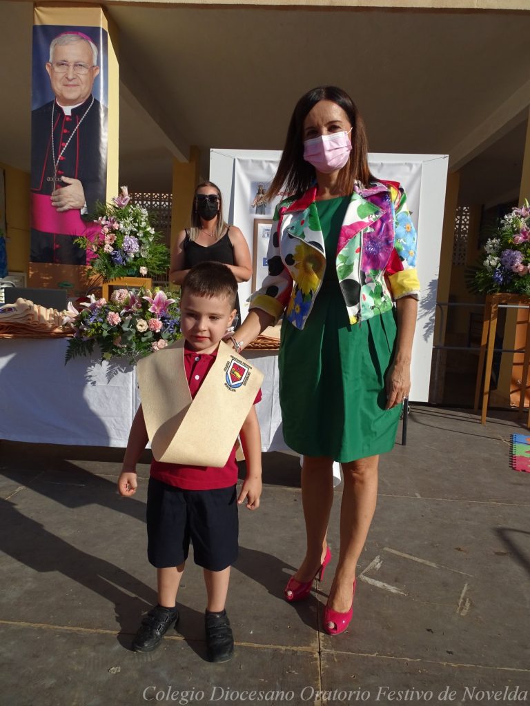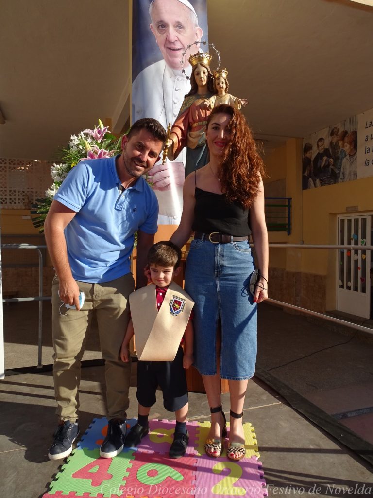 El lunes 21 de junio tuvo lugar la bendición e imposición de las becas de los niños y niñas de 3 años. Este acto se solía hacer al inicio del curso como símbolo de bienvenida al centro. Por la situación y condiciones Covid se ha tenido que aplazar a final de curso. Por suerte se pudo celebrar en el patio del colegio, acompañados por las familias, representantes del Equipo Directivo y AMPA y profesorado. Las tutoras Susi Botella y Paula Navarro cierran con este acto un curso atípico y difícil para todos. El alumnado ha demostrado una gran capacidad de adaptación a su corta edad. Dando lugar a un curso excepcional de esfuerzo y trabajo, con unos resultados excelentes. Los alumnos y alumnas recibieron su beca escolar que les acompañará toda su escolaridad en el colegio. La beca fue bendecida por el director titular Don Francisco Rayos.
