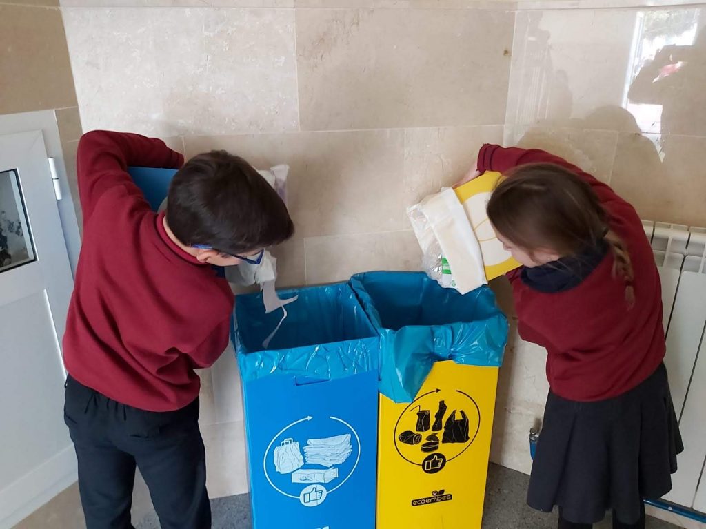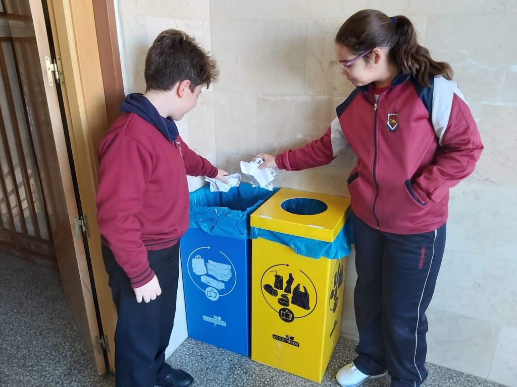 Dentro de los proyectos de aprendizaje que se trabajan en 4º ESO de diversificación (PR4) tenemos el de “Análisis y protección del medio ambiente”; por ello es este curso el que está gestionando y dirigiendo las actividades. En primer lugar, estos alumnos y alumnas se han encargado de distribuir contenedores de reciclaje por todo el Centro y junto con su tutora se irán vertiendo los residuos a los contenedores externos. Además, a lo largo de la 2ª evaluación, prepararán charlas y talleres que impartirán en todas las etapas. El objetivo es sensibilizar y concienciar para que colaboremos en el cuidado de nuestro entorno.