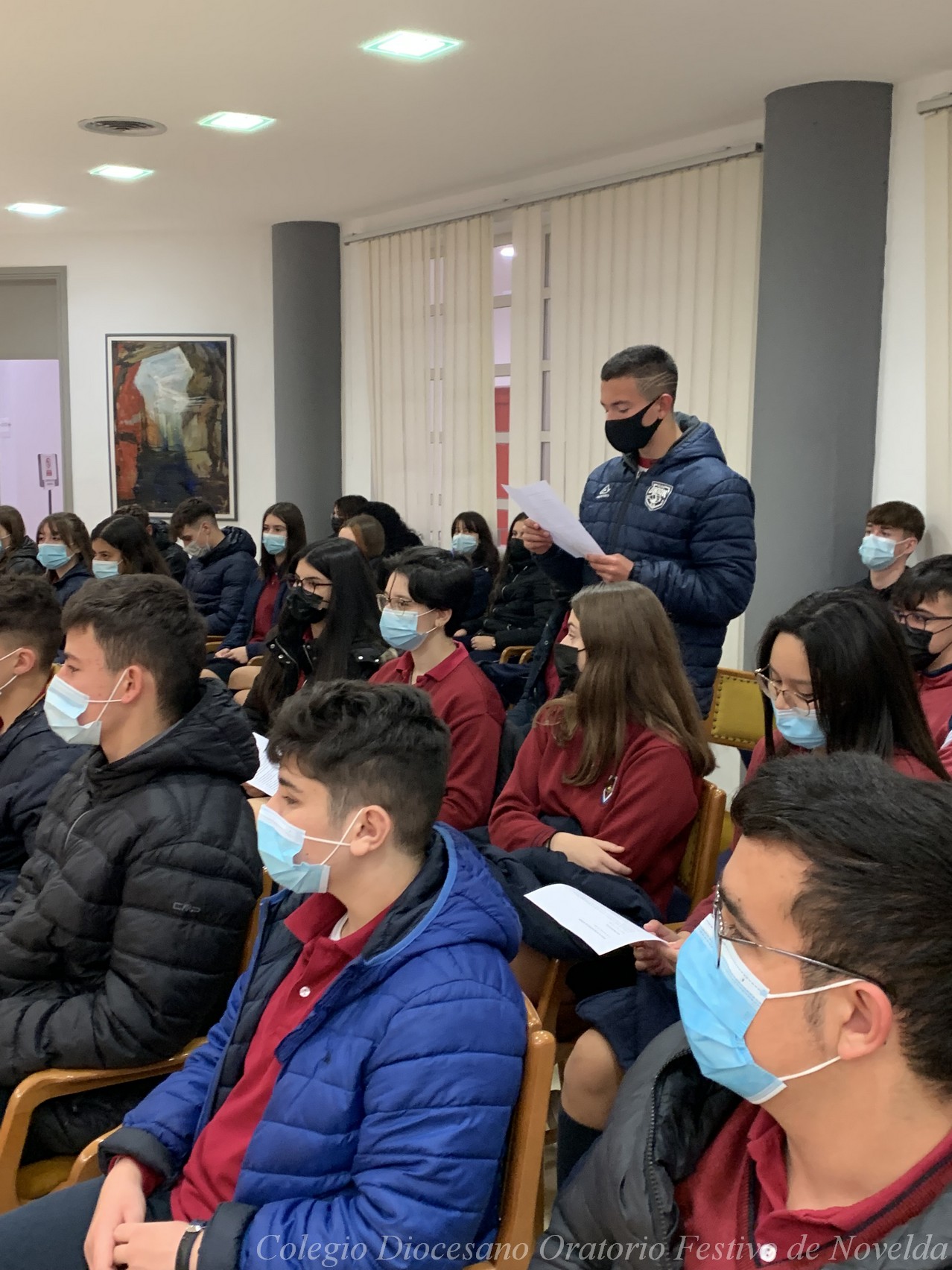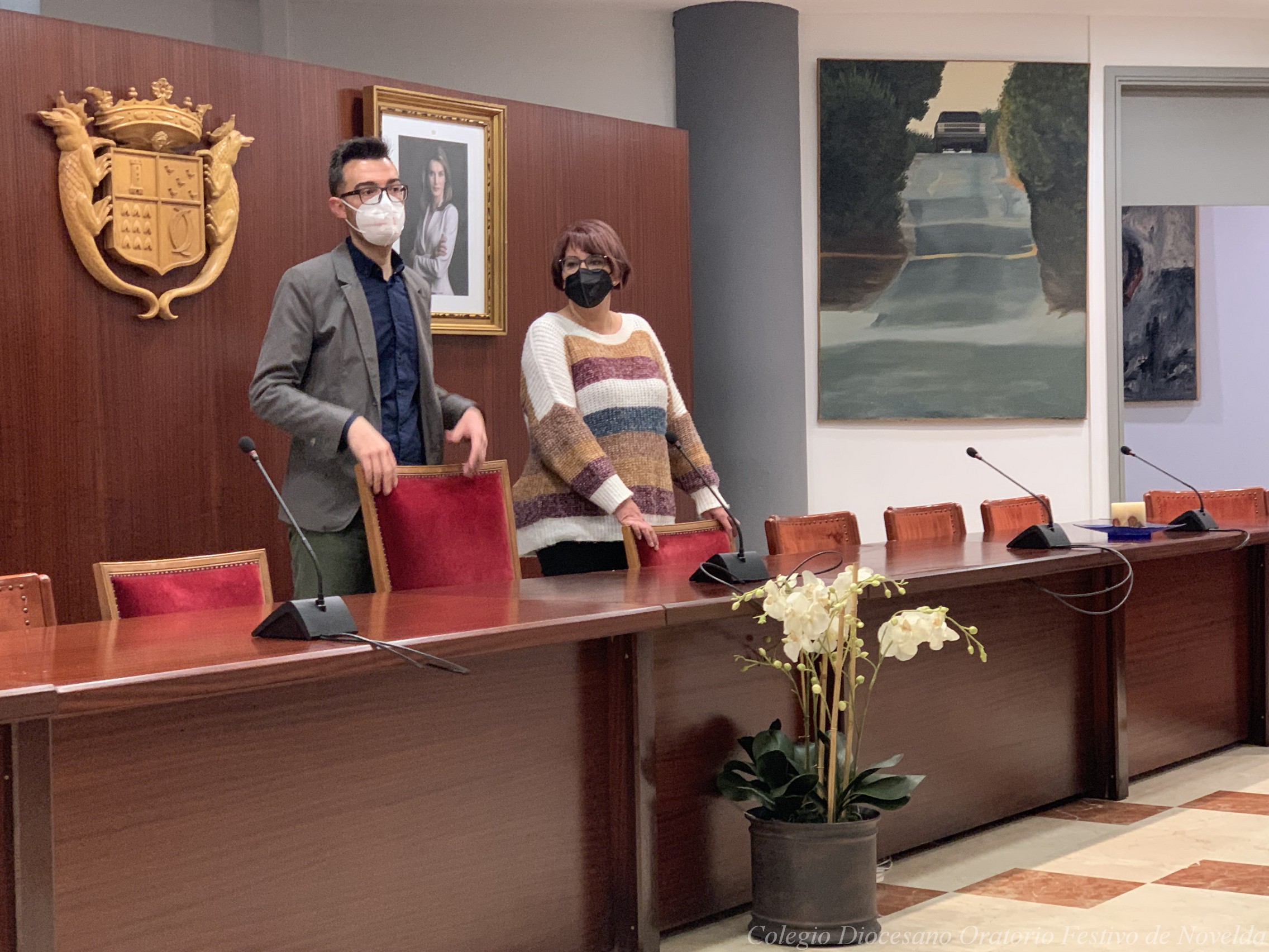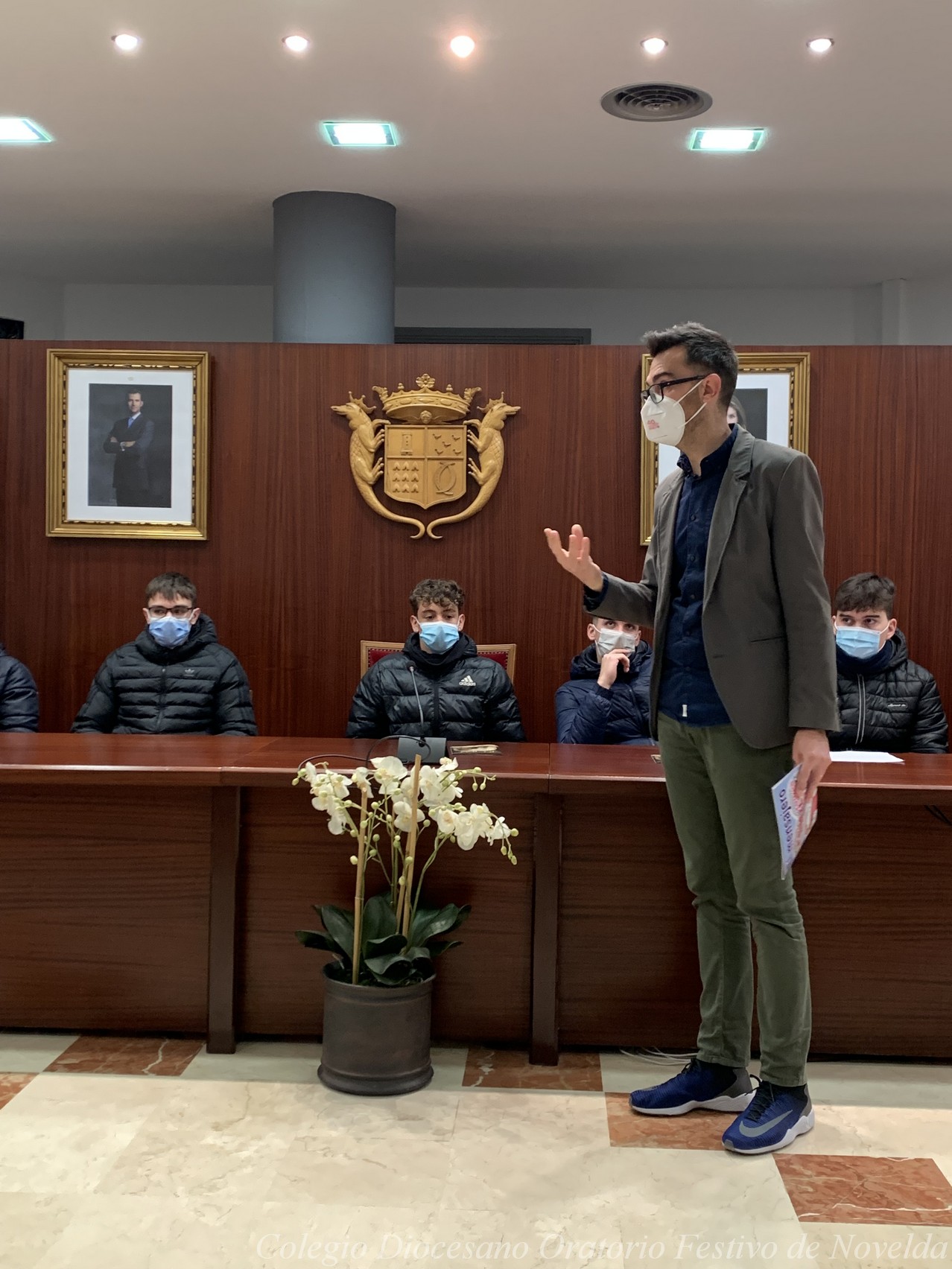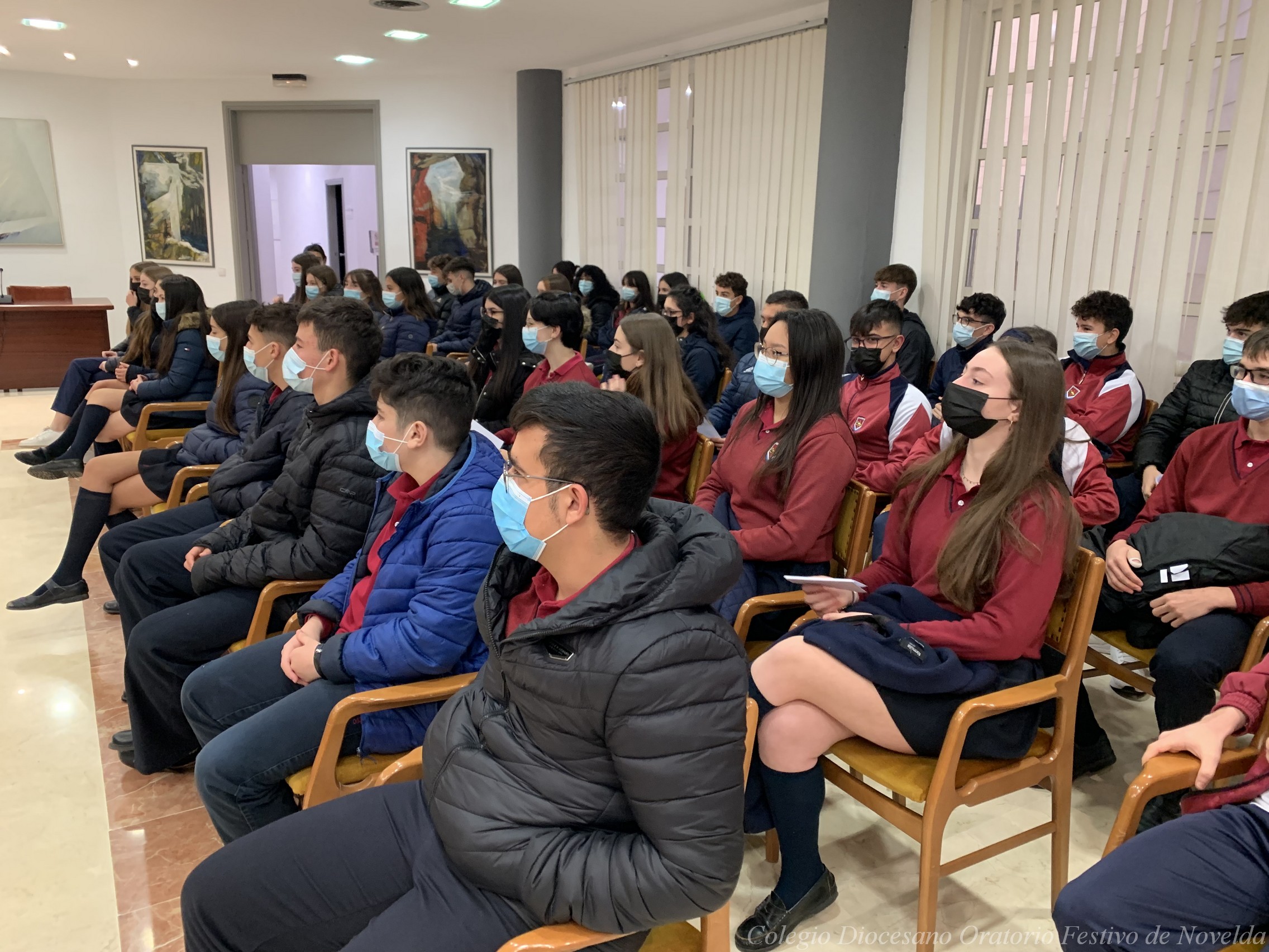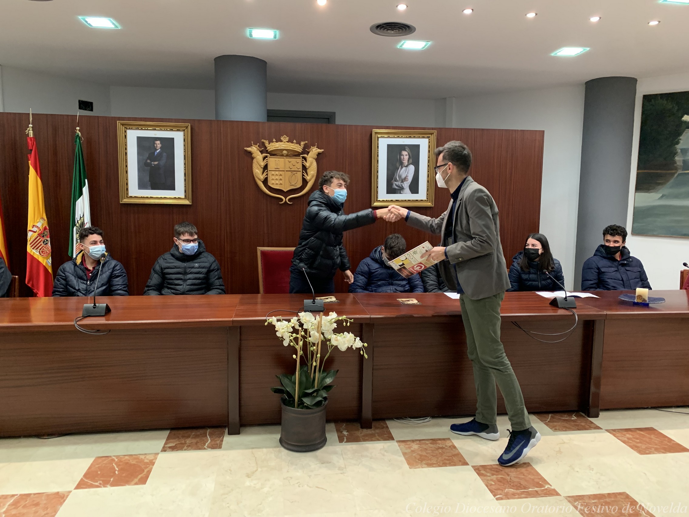 Los alumnos y alumnas de 4º ESO del colegio acaban de visitar al Alcalde de Novelda, D. Francisco Martínez. El Sr. Alcalde les ha enseñado el despacho en el que trabaja y el Salón de Plenos, pero además los escolares también han tenido la oportunidad de conocer cómo funciona el sistema electoral y el Ayuntamiento.