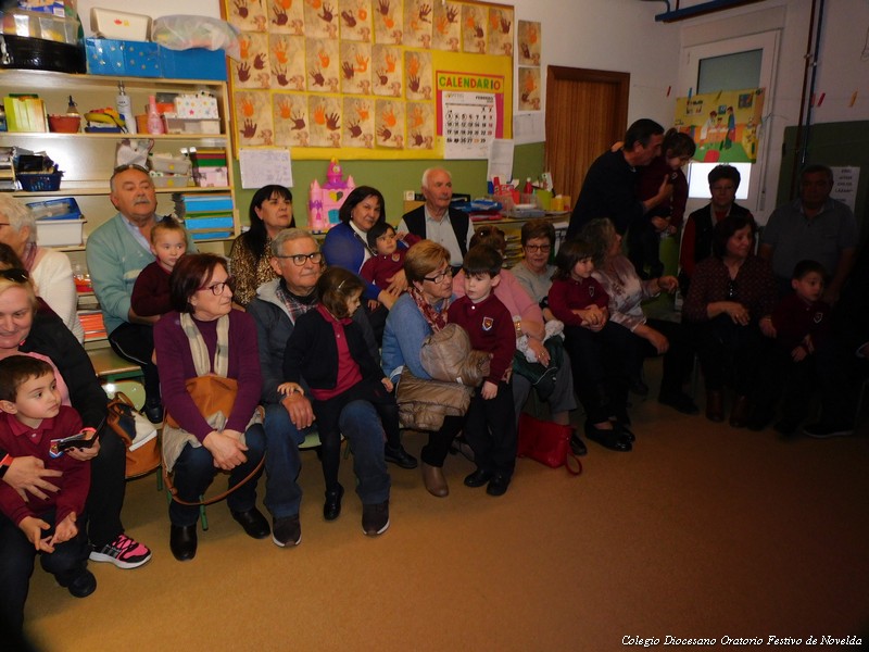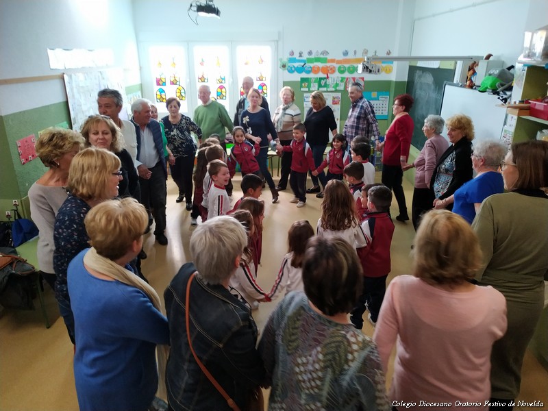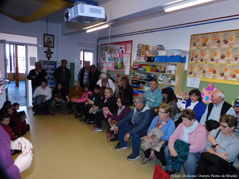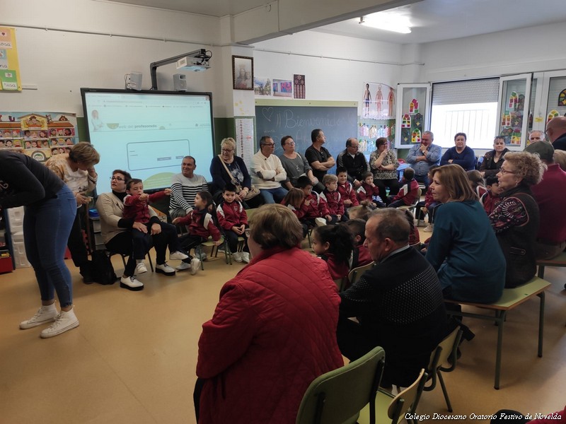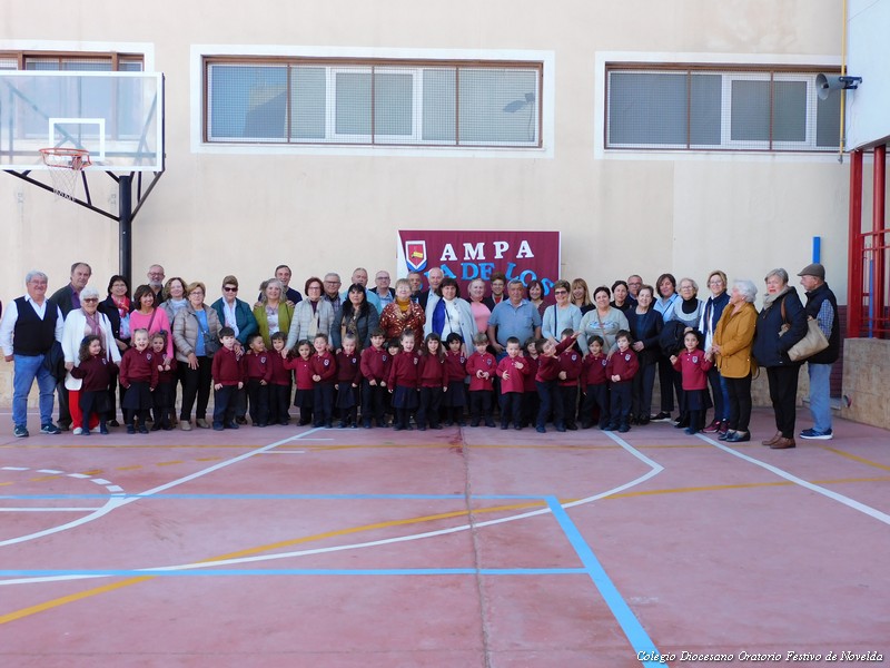 El pasado jueves 26 de febrero celebramos en el colegio “el día de los abuelos/as”. Actividad organizada en la etapa de Educación Infantil como homenaje a los abuelos y abuelas de nuestros alumnos/as. En nuestra sociedad actual tienen un papel fundamental en las familias. Por ello hemos querido dedicarles esta jornada de convivencia. Compartimos la tarde con ellos/as en las aulas. Hablaron con sus nietos/as de su infancia, compartieron juegos de niños, recitaron poesías, cantaron canciones de su época, bailaron, etc. Abuelos, nietos /as y seños disfrutaros de esta tarde entrañable de convivencia. Como colofón el AMPA del colegio preparó una chocolatada con coca boba para todos los asistentes y realizó fotografías que posteriormente les regalará para que tengan un bonito recuerdo de este gran día.
