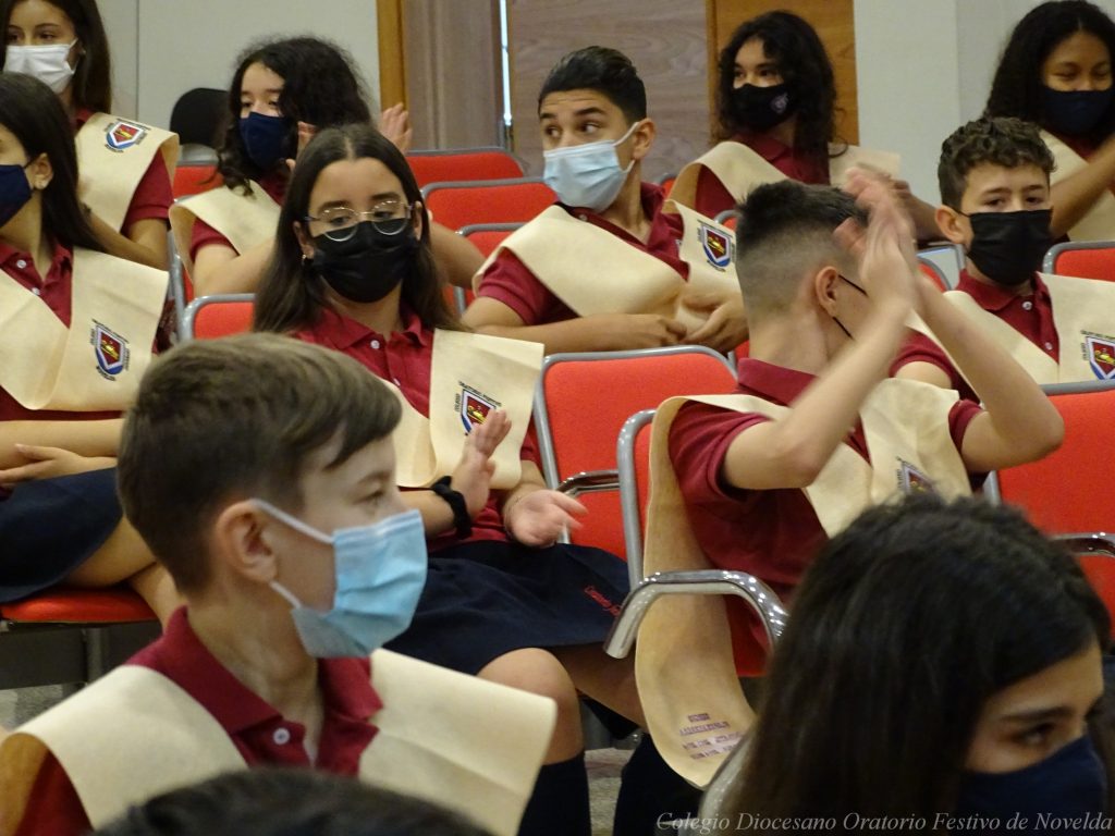El alumnado de 1º de ESO del presente curso ha recibido su merecido y esperado reconocimiento por la finalización de su etapa de Primaria, acompañados de sus actuales tutores, la Jefa de Estudios de Infantil así como del Director Titular y la Directora Pedagógica.