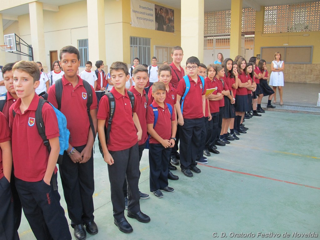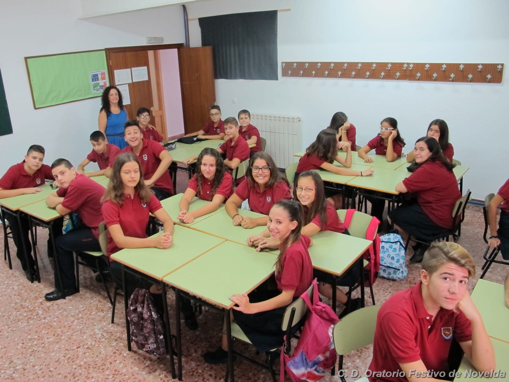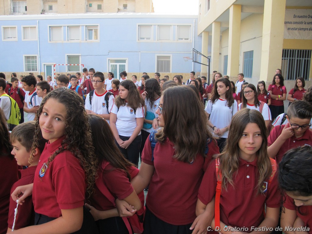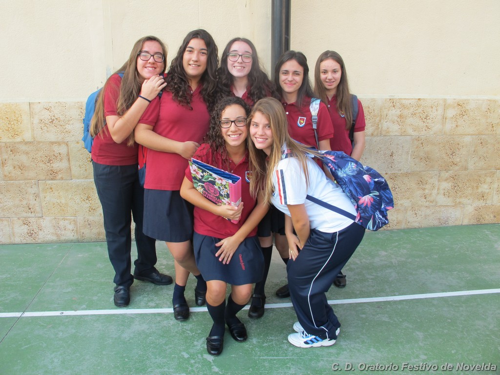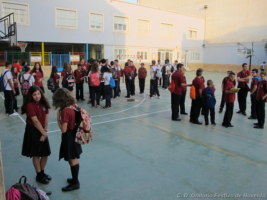 Hoy día 11 de septiembre a las 8:30 horas de la mañana los alumnos de secundaria de nuestro Centro han comenzado un nuevo curso. Aunque las vacaciones quedaron atrás, la alegría de un inicio se ha hecho notar en la mayoría de los rostros. El cambio de horario parece ser lo que más cuesta aceptar, sin embargo, los más madrugadores ya esperaban tras las puertas minutos antes de que se abrieran. La emoción de ver de nuevo a sus compañeros, las sonrisas y algún abrazo se repetían constantemente.