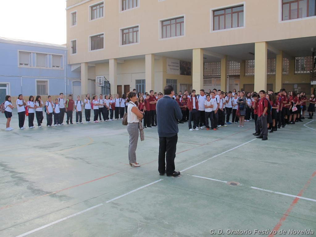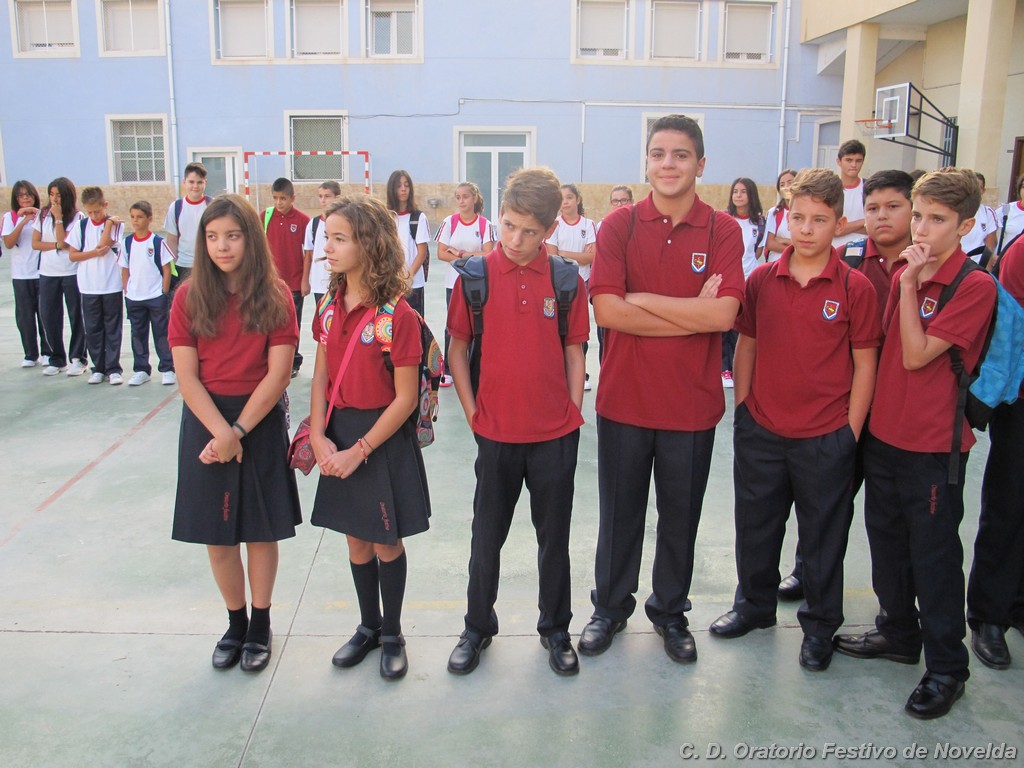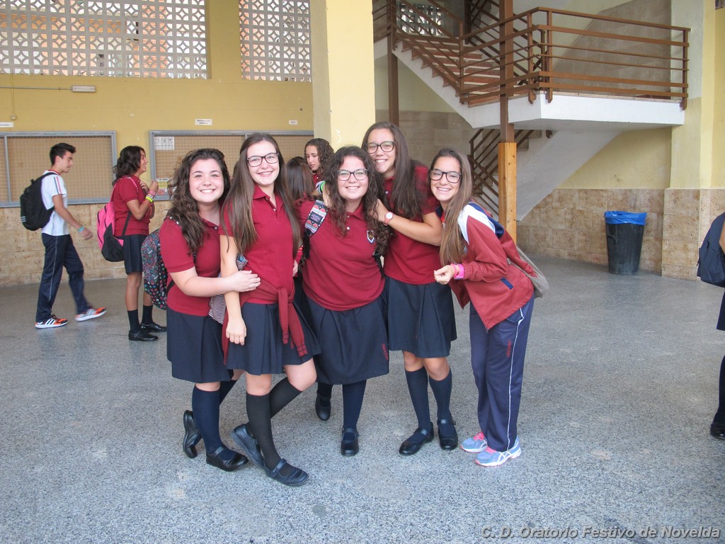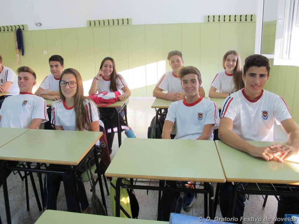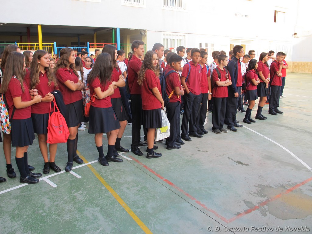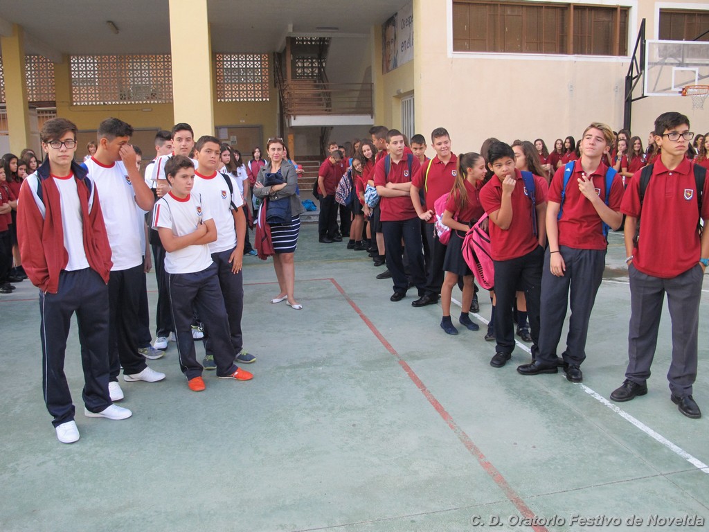 Hoy día 11 de septiembre a las 8:30 horas de la mañana los alumnos de secundaria de nuestro Centro han comenzado un nuevo curso. Aunque las vacaciones quedaron atrás, la alegría de un inicio se ha hecho notar en la mayoría de los rostros. El cambio de horario parece ser lo que más cuesta aceptar, sin embargo, los más madrugadores ya esperaban tras las puertas minutos antes de que se abrieran. La emoción de ver de nuevo a sus compañeros, las sonrisas y algún abrazo se repetían constantemente.