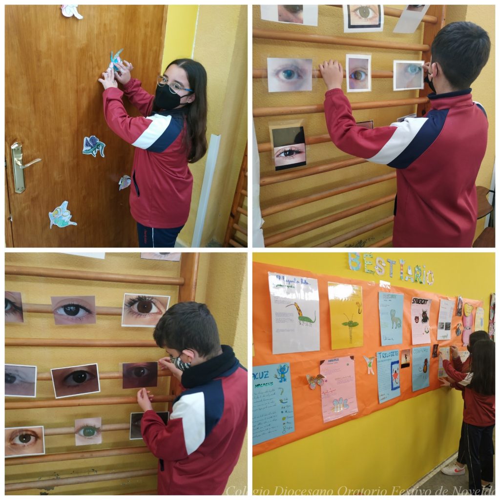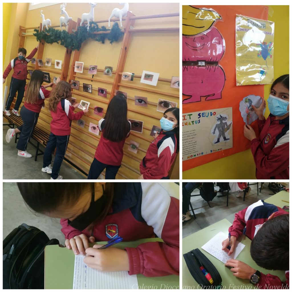 En clase de Música se han elaborado bandas sonoras fantásticas que amenizaron las entradas y el recreo de los alumnos de Secundaria y, en las clases de Plástica, se pintaron ojos con la técnica del sombreado que han ayudado a elaborar el lema de nuestra Semana del libro: Una mirada a lo fantástico.
